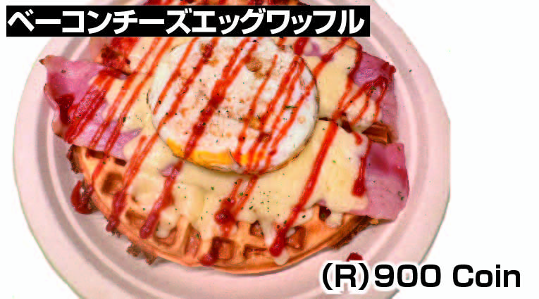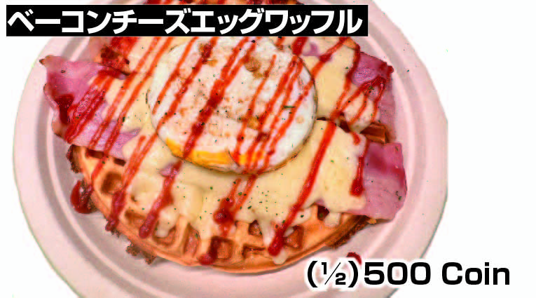 ベーコンチーズエッグワッフルベーコンとチーズの塩っぱさと、卵のマイルドさが加わり、更に酸味のあるケチャップをかけることによって、ピザのようでピザではないという不思議な食感がとても人気です!